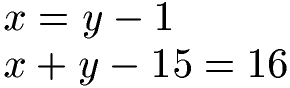 Mit y = 16 gehen wir noch in die erste lineare Gleichung rein und berechnen noch x = 15.
