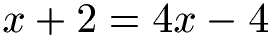 Hier sind beide Gleichungen bereits nach y aufgelöst. Die beiden Gleichungen sagen aus, dass y so groß ist wie x + 2 und das y auch so groß ist wie 4x - 4. Dies bedeutet, dass x + 2 und 4x - 4 gleich groß sind. Wir nutzen dies aus, indem wir sie gleichsetzen.