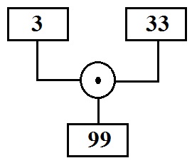 Sehen wir uns noch eine einfache Erklärung zum Rechenbaum an, diesmal Multiplikation. Berechnet wird 3 · 33 = 99.